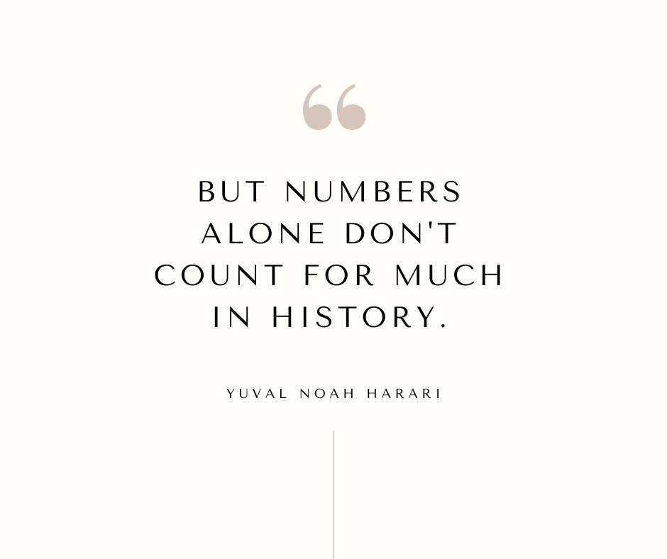 Yuval Noah Harrari, a contemporary historian, argued that “…numbers alone don’t count for much in history. History is often shaped by small groups of forward-looking innovators rather than by the backward-looking masses.”